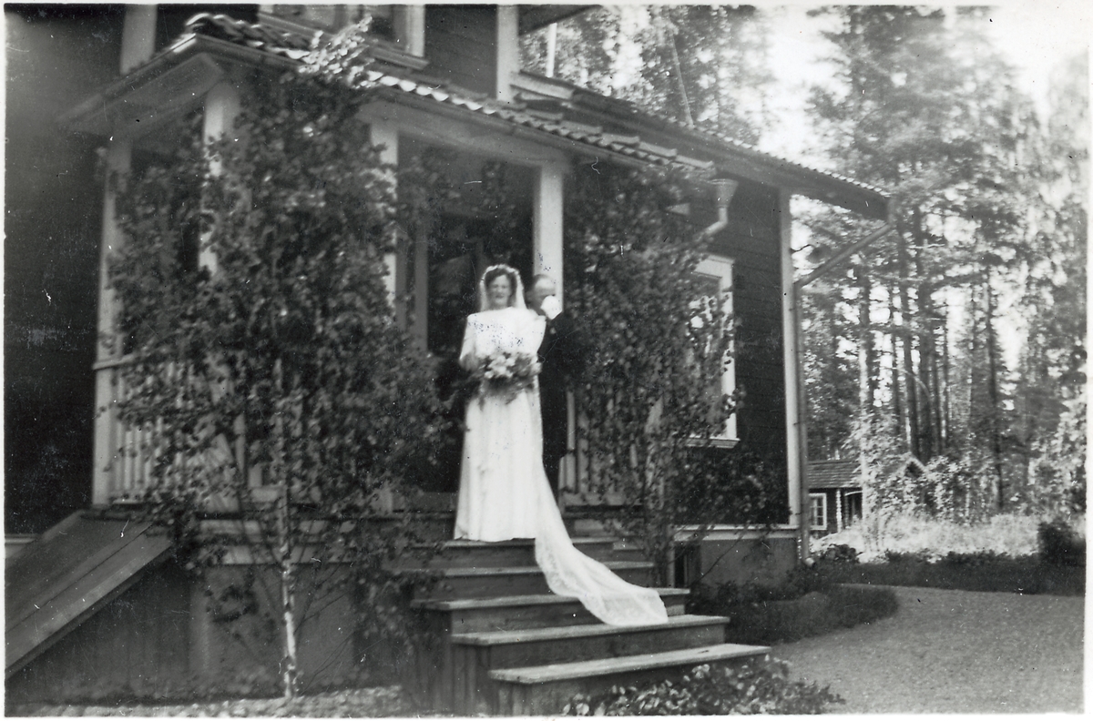 Bröllopsfest i Långsjön midsommarafton 1942. Per Erik och Tekla Anderssons näst yngsta dotter Siri gifter sig med Anders Lindgren.