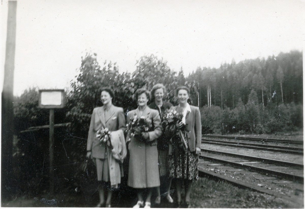 Långsjön 1940-tal. Systrarna Ingeborg, Siri och Ingrid samt okänd kvinna.
