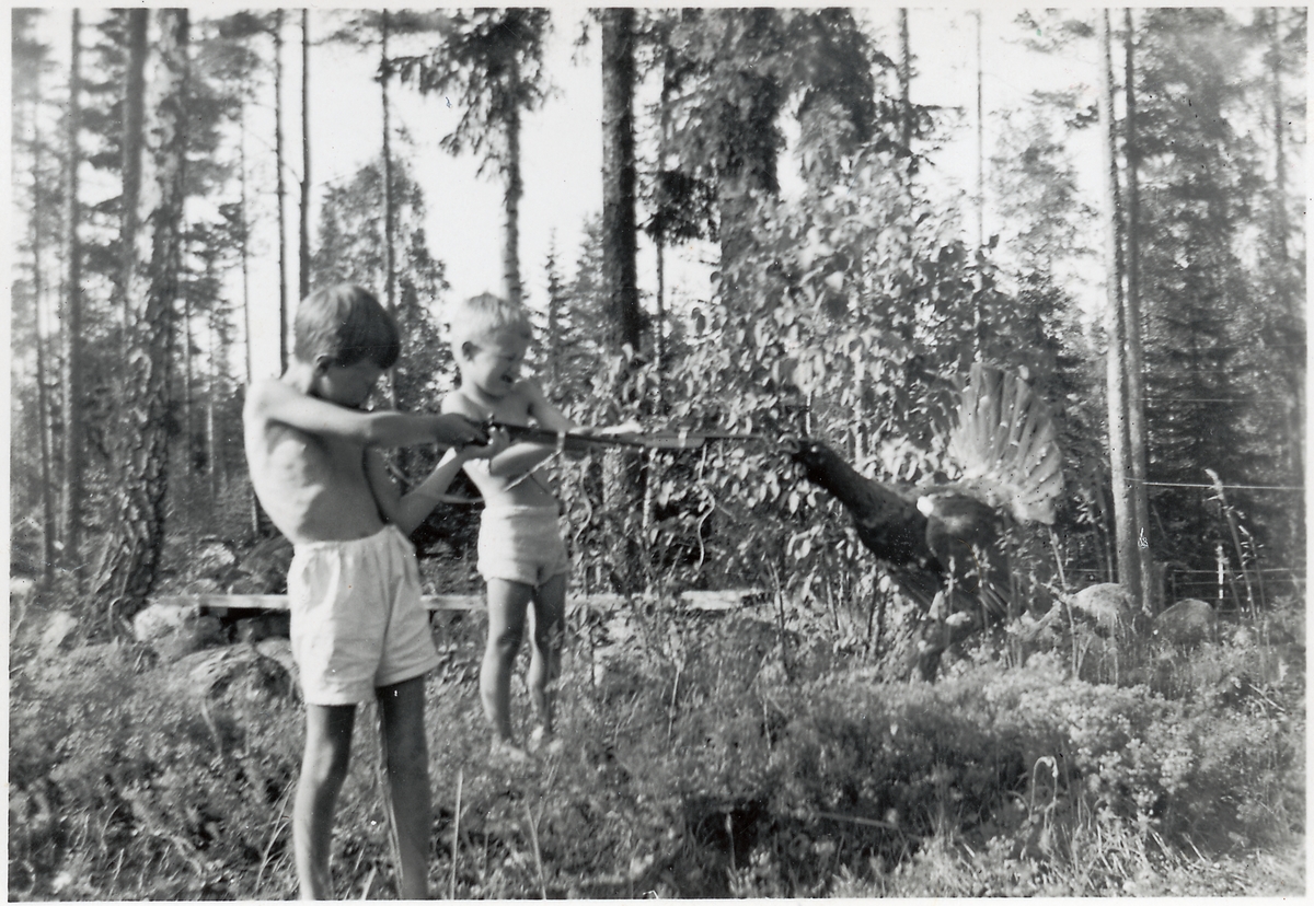 Björn och Göran leker i Långsjön. Söner till Lisa och Ingemar Aldenby.