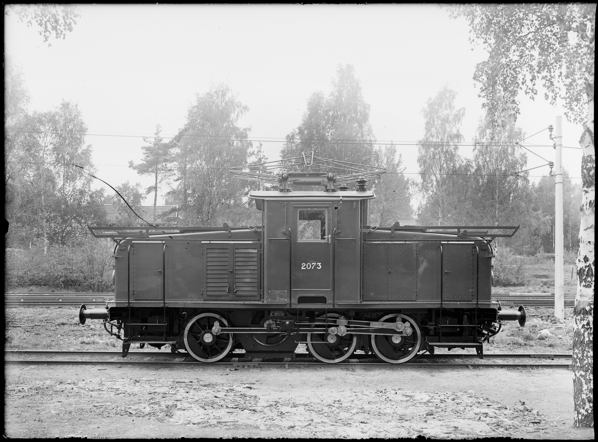 Titel: Lok tillverkat för Norges Statsbaner, NSB El 10.2073. Bild troligen tagen vid Vagn & Maskinfabriken i Falun som var en del av ASJ, Aktiebolaget Svenska Järnvägsverkstäderna.