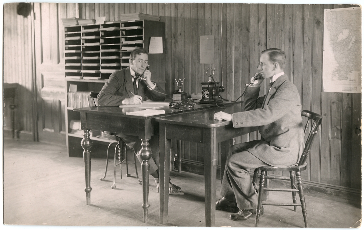Titel: Godsexpeditionspersonal sysselsatta med telefonavisering.