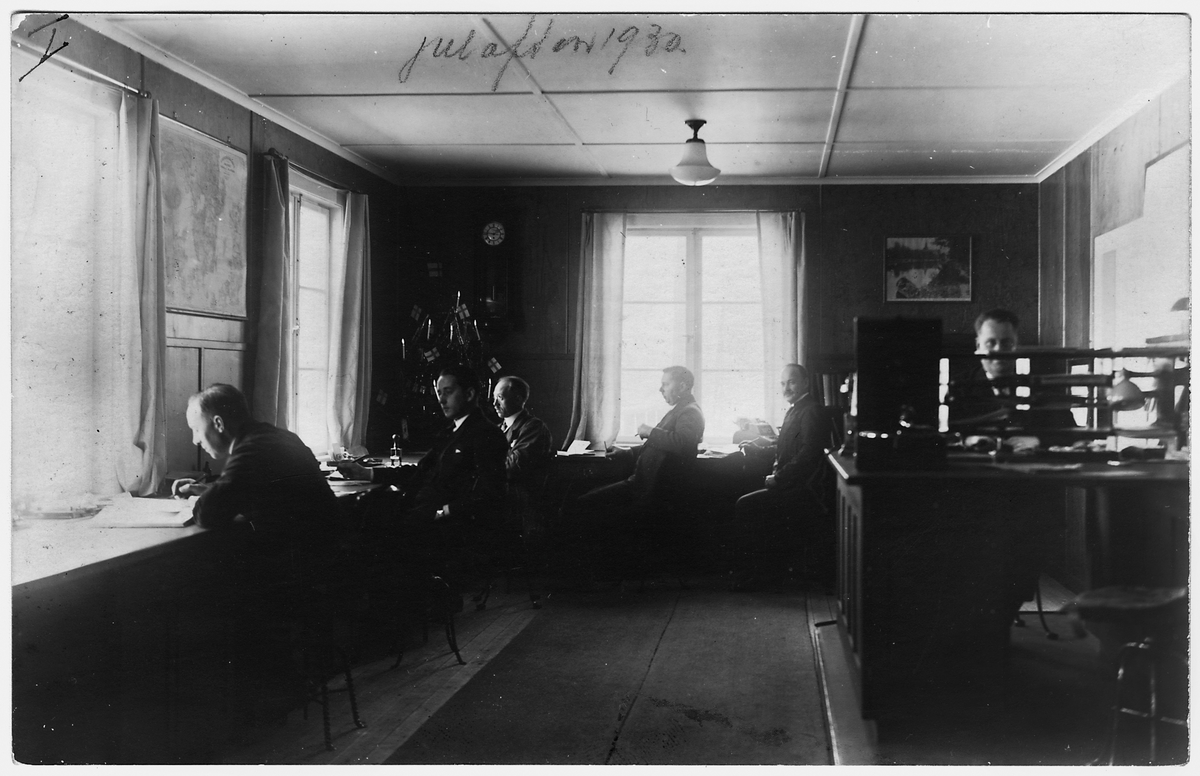 Personal på förrådsexpeditionen i Arvika järnvägsstation julafton. Statens Järnvägar, SJ.
