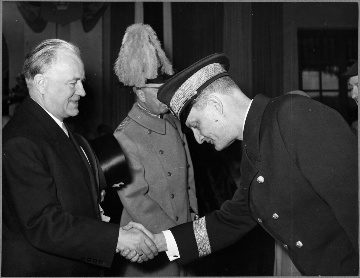 Generaldirektör Erik Upmark hälsar på Åsgeir Ásgeirsson, Islands dåvarande President.