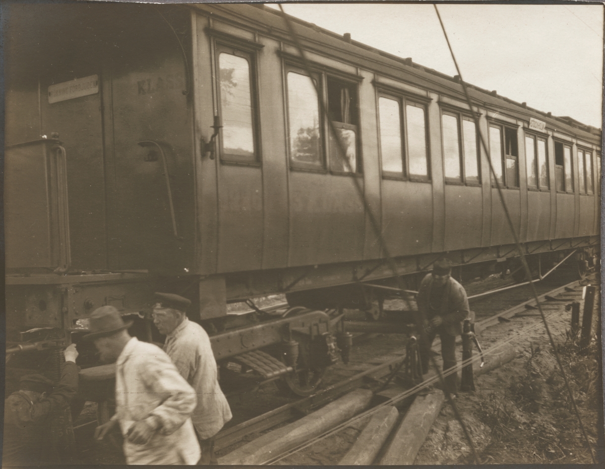 Arbete pågår efter lokkollisionen på Malmslätt station, där Statens Järnvägar, SJ A 1016 och SJ B 1035 var de olycksdrabbade ångloken.