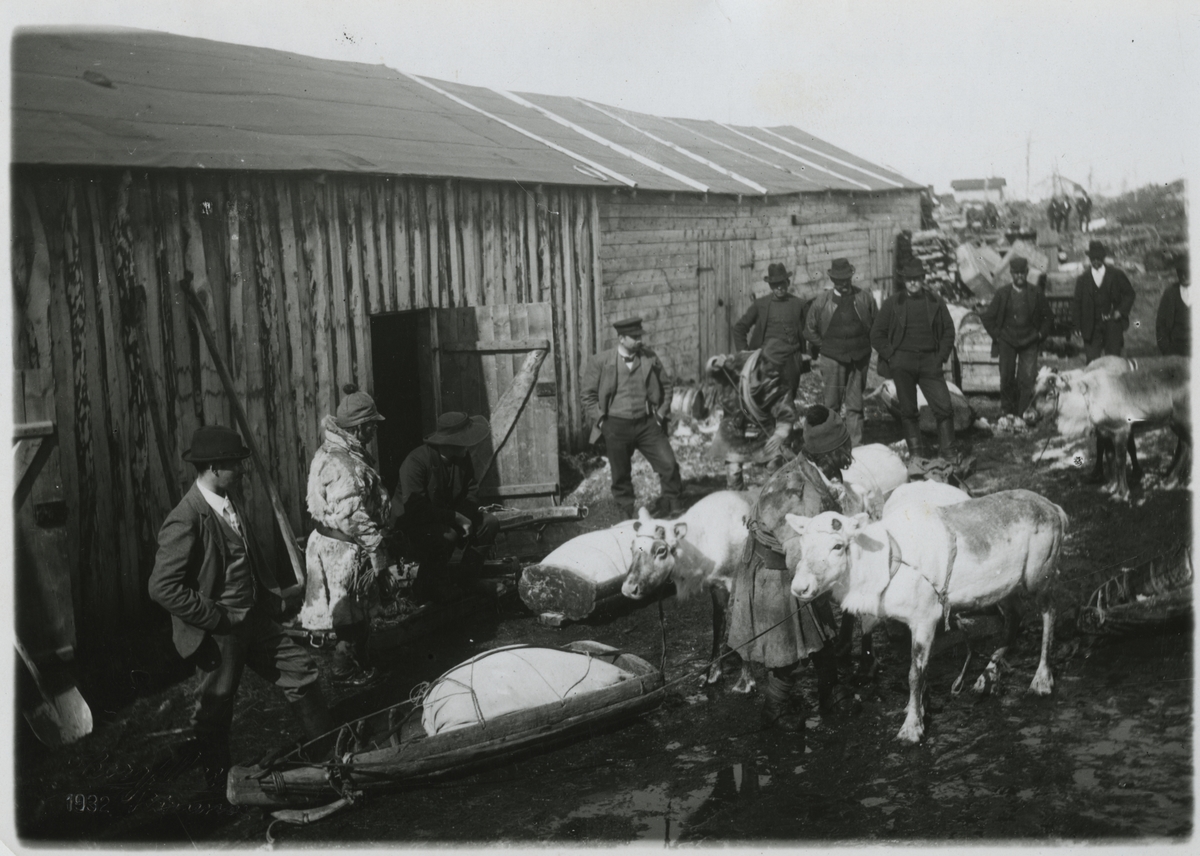 Rallare och samer utanför magasinet till Hannu och Greens proviant förråd
