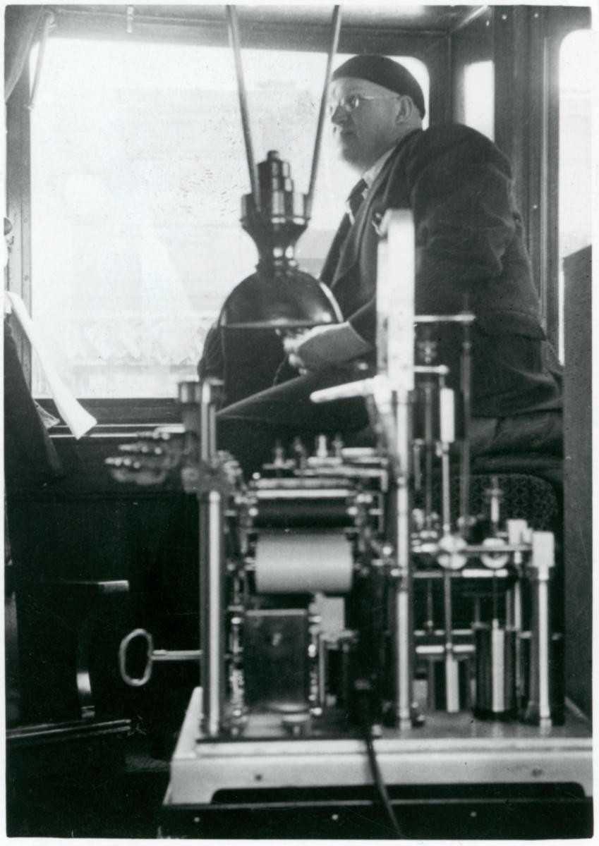 En Hallade apparat i en vagn. Ett mätinstrument som används vid Hallade metoden för att mäta, designa och göra kurvor för järnvägstrafik.