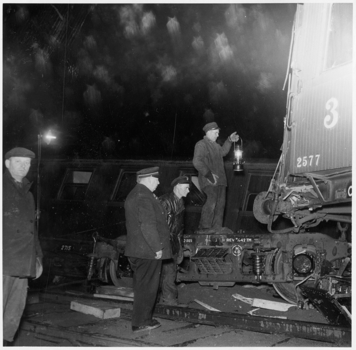 Personal vid Statens Järnvägar, SJ Co8 2577 efter tågolycka.