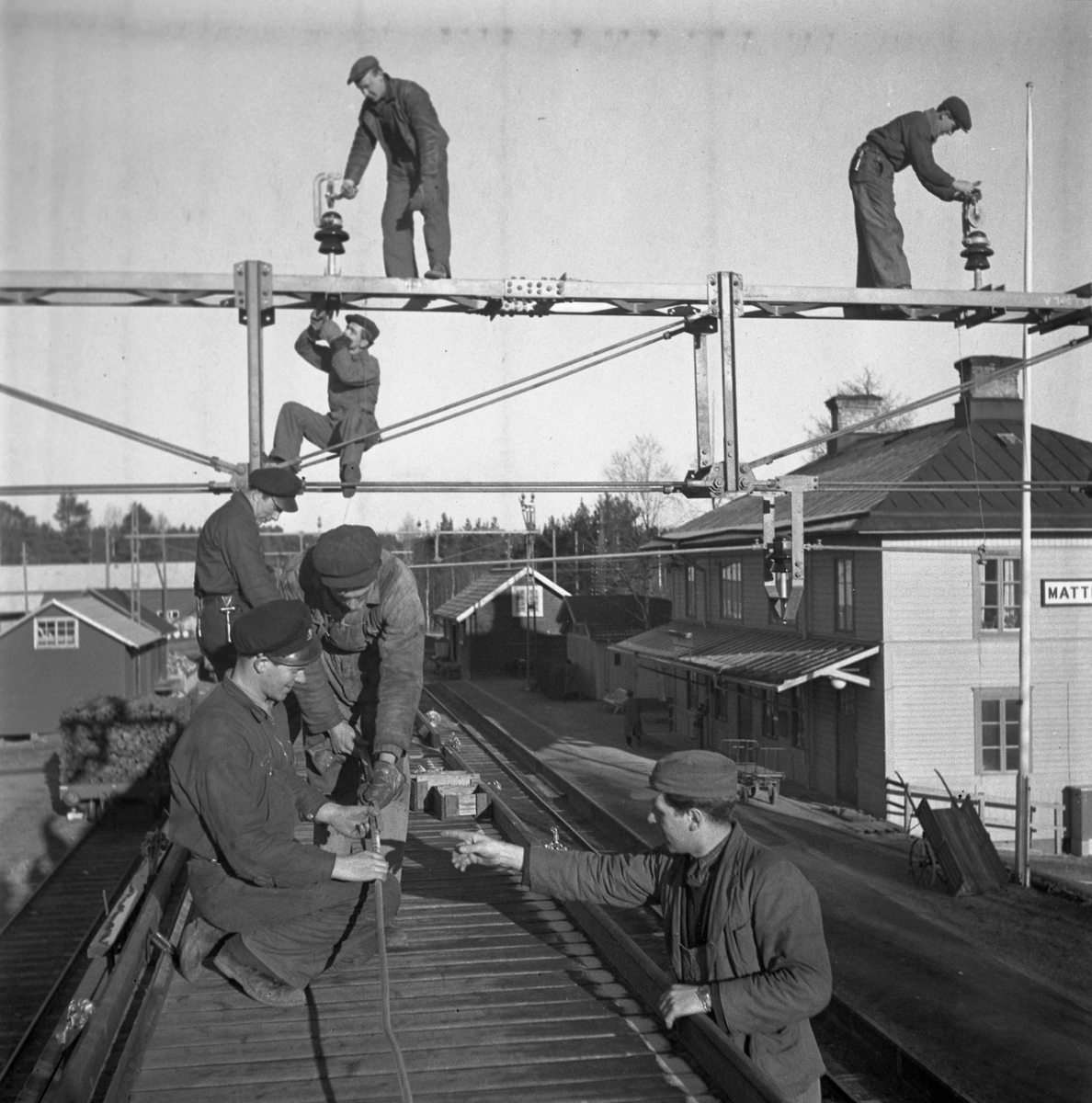Arbetsbild som visar elektrifieringsarbete på sträckan Östersund-Storlien