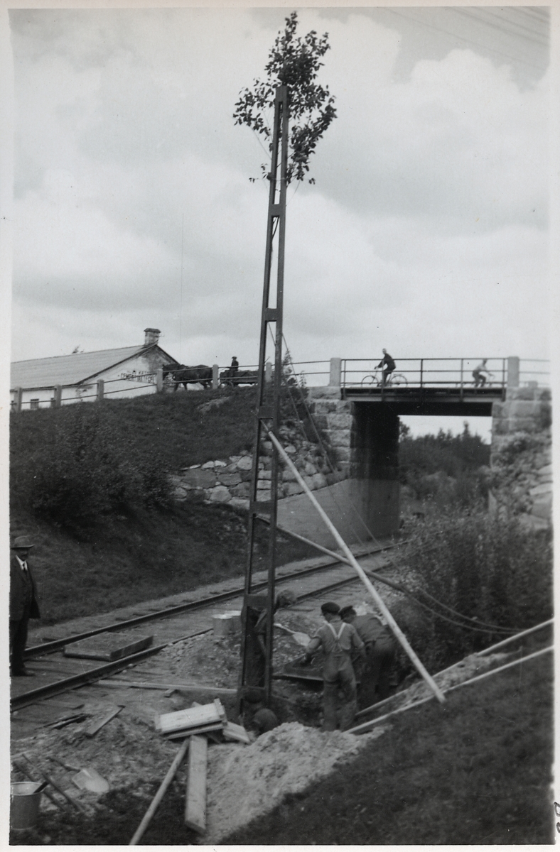 Titel: Första kontaktledningsstolpen sätts ned 1931.