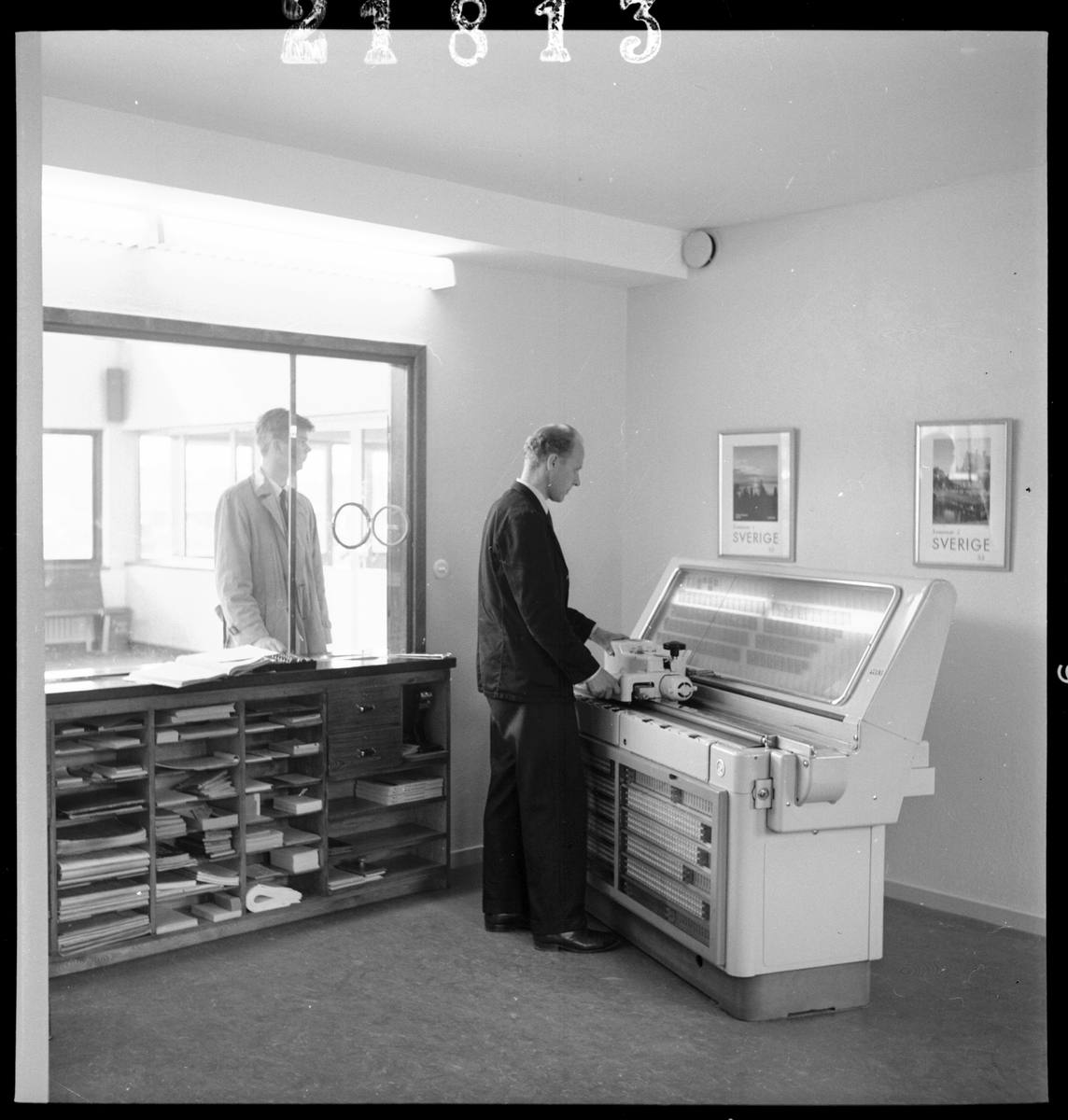 Karlshamns station. Interiörer från biljettexpedition och upplysningsbyrå.