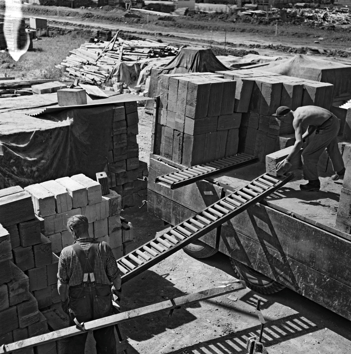 Avlastning av byggmaterial. SL AB TRANSPORT