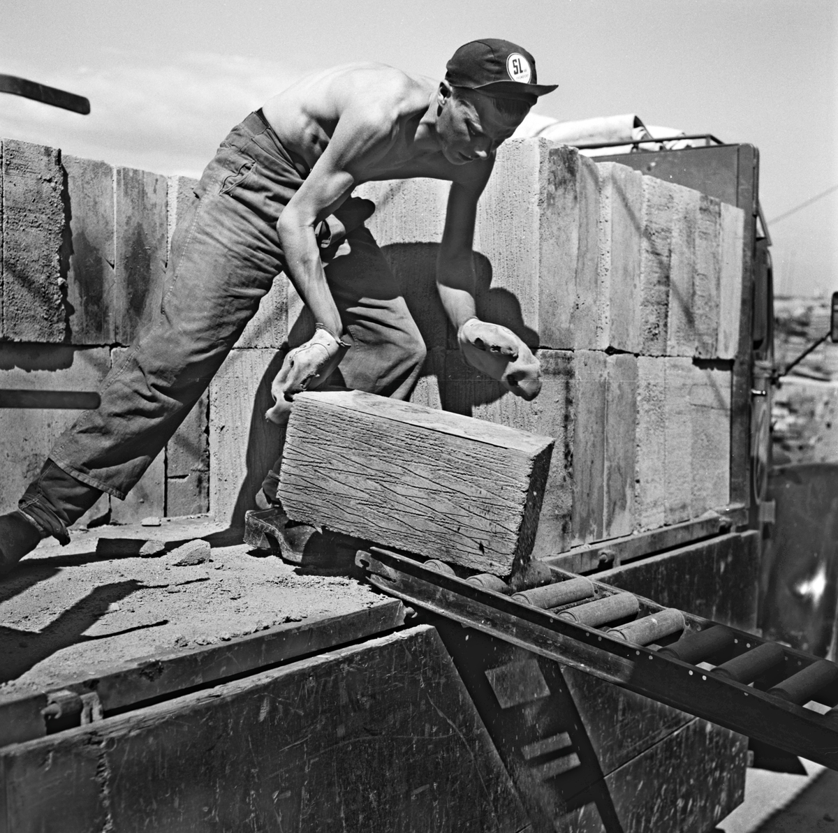 Avlastning av byggmaterial. SL AB TRANSPORT