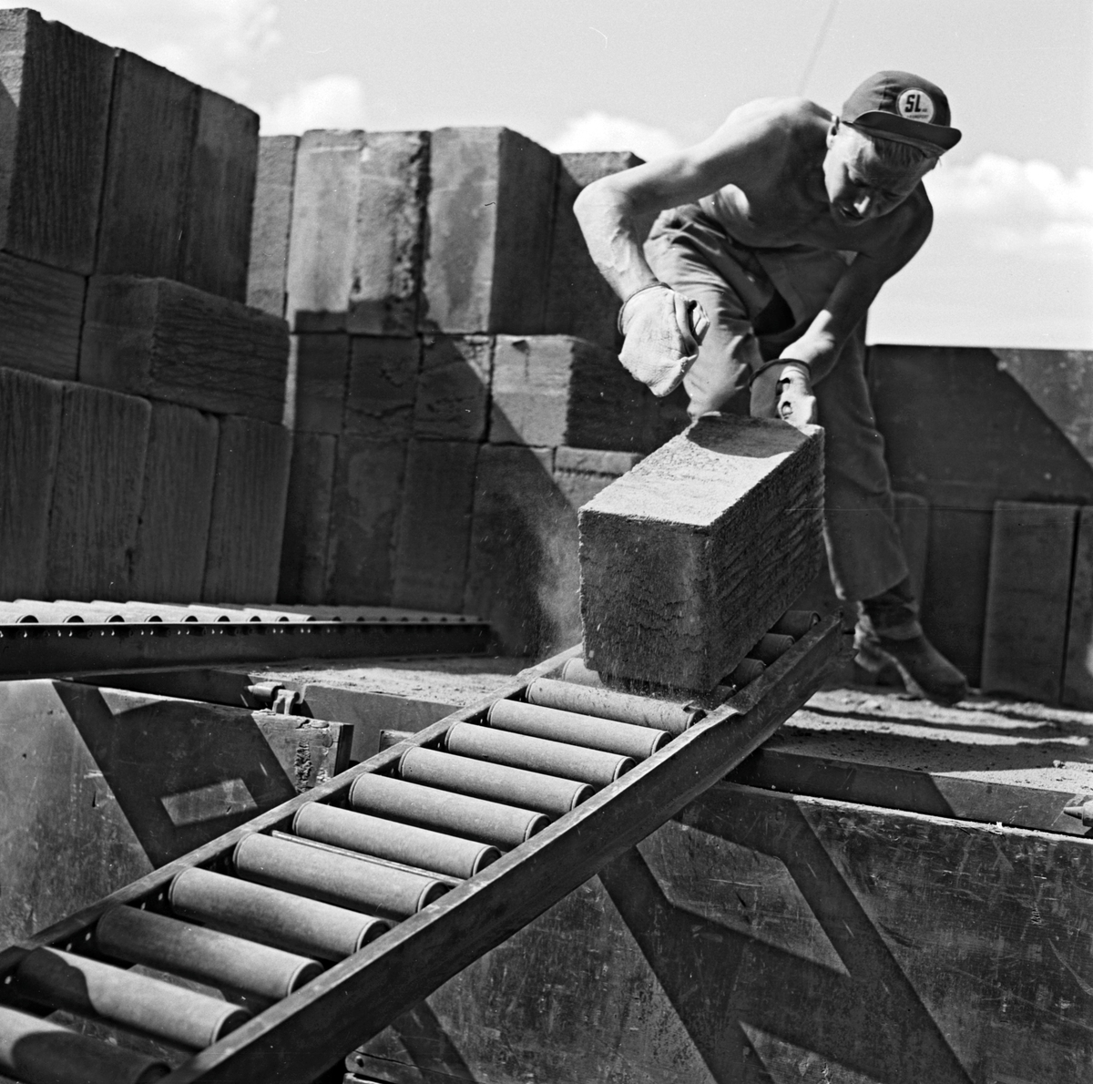 Avlastning av byggmaterial. SL AB TRANSPORT