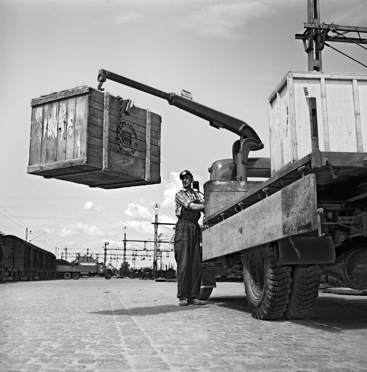SL AB TRANSPORT.Avlastning med lyftkran.