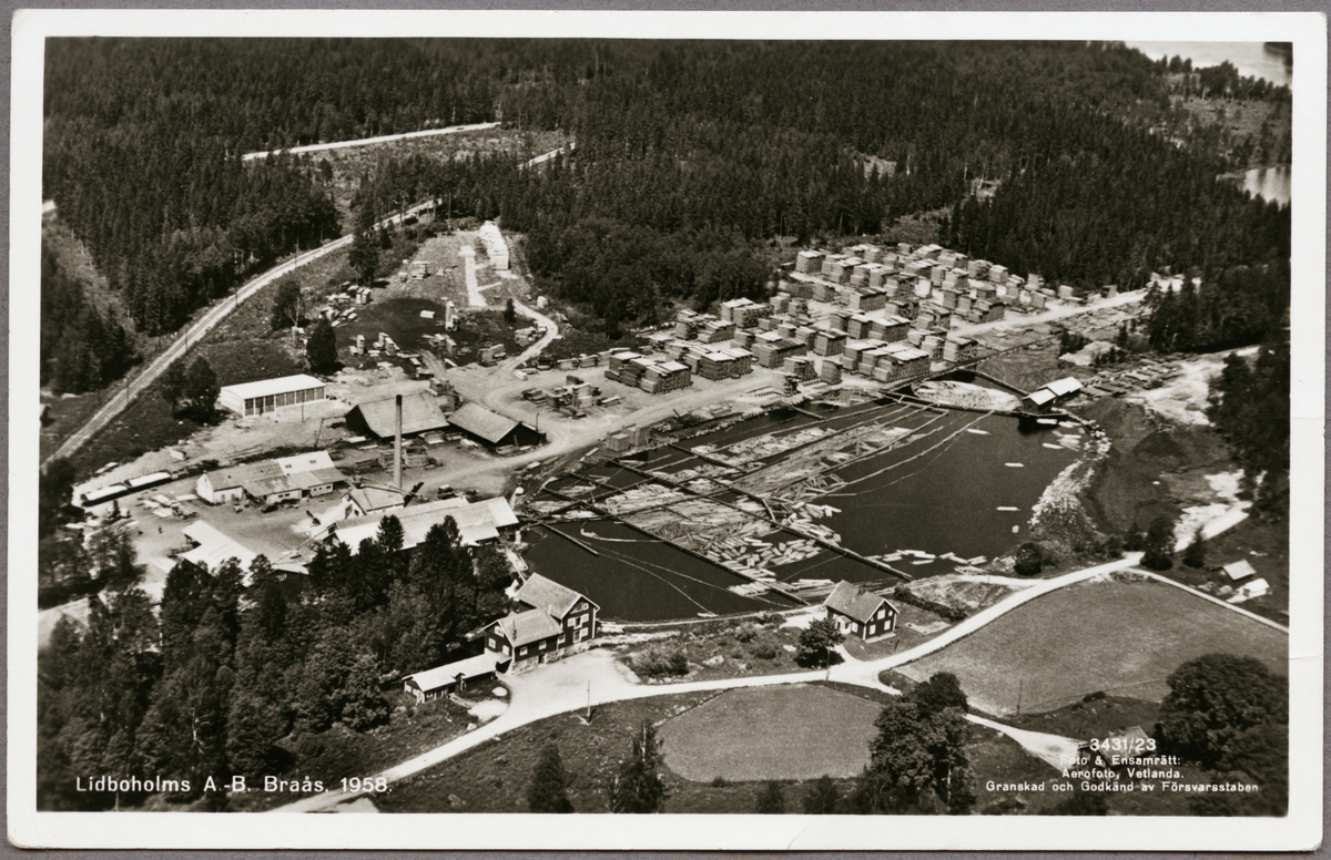 Flygfoto över Lidboholms A.-B. Braås, 1958.