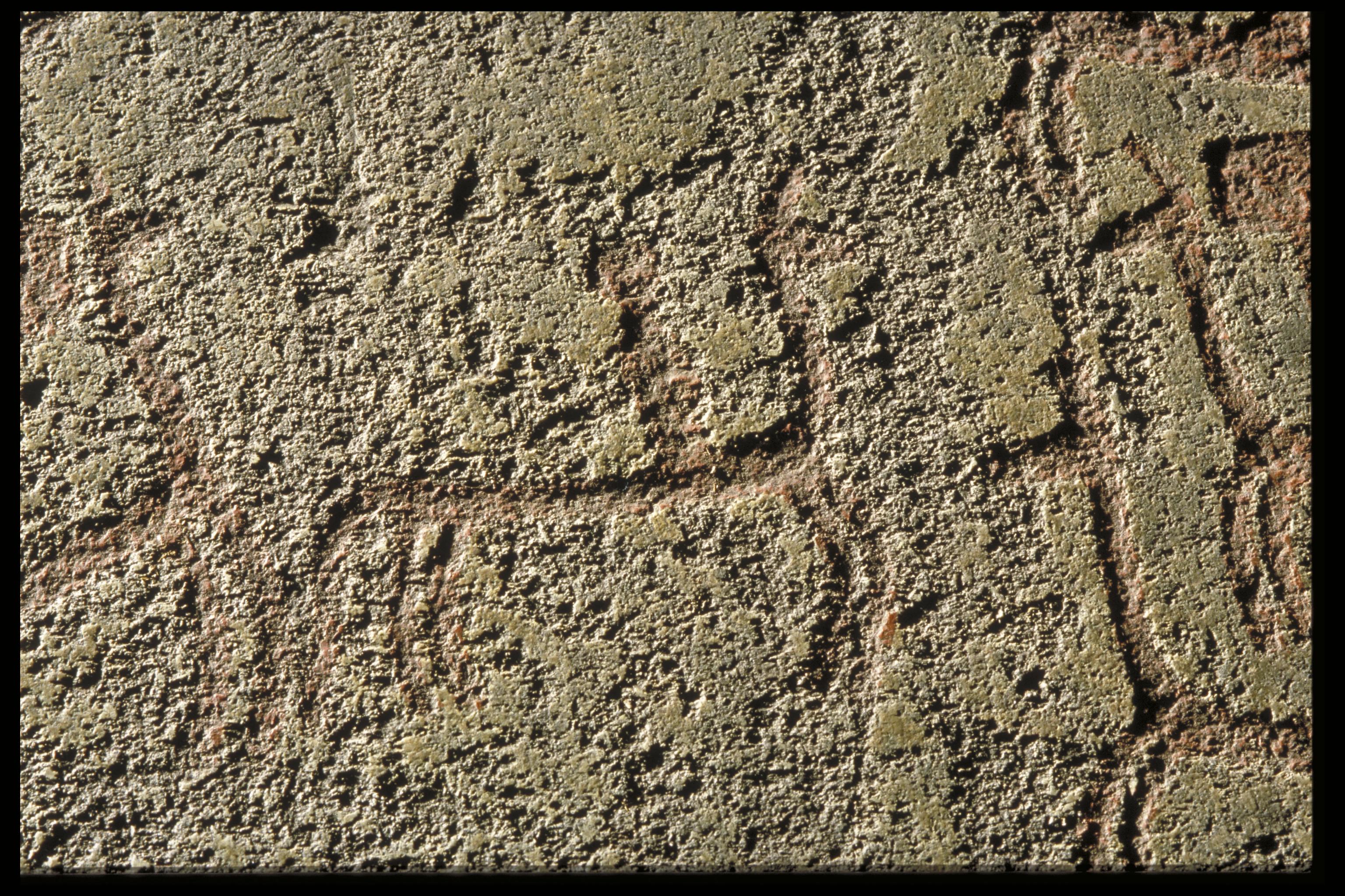 Krigare till häst. Kraftig reliefvittring. Tanum 72:4.