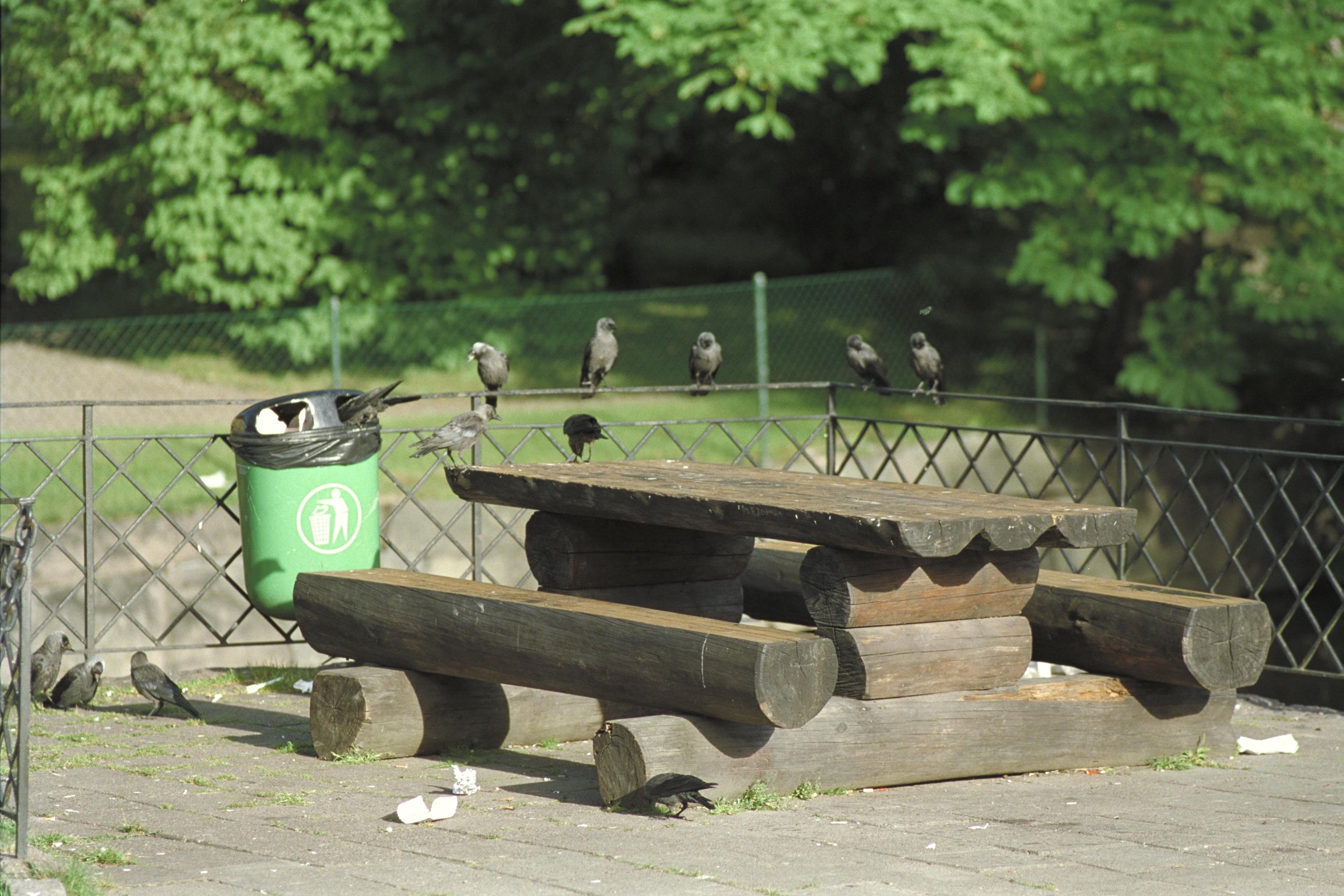 Fikaplats vid torget med bevingade gäster.