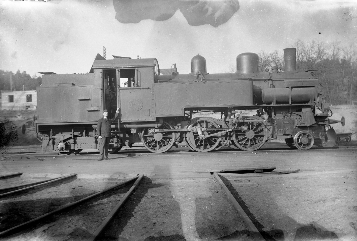Statens Järnvägar, SJ J 1297 på vändskiva. Loket byggdes av AB Atlas 1917 och skrotades1971.