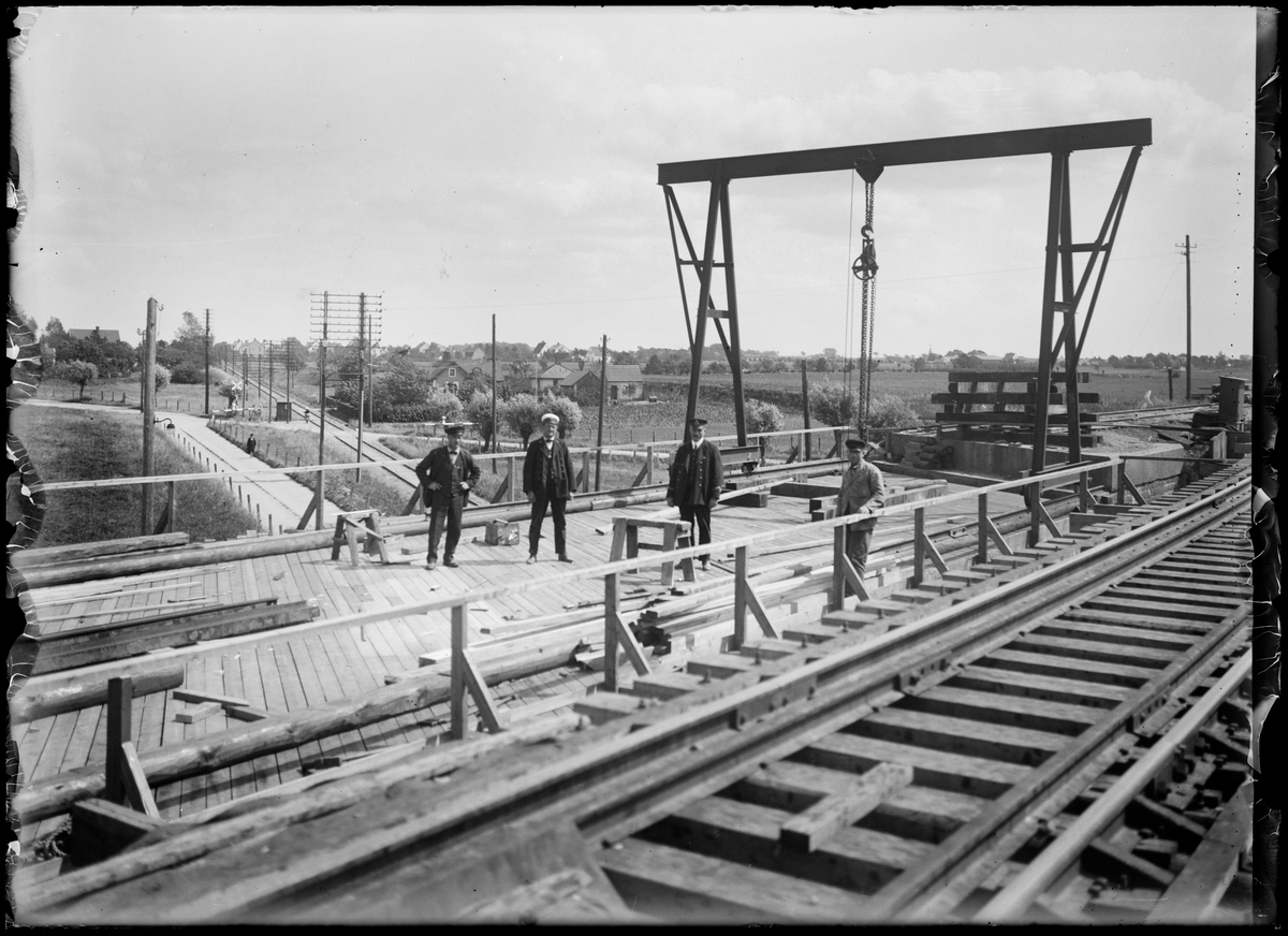 Ombyggnad av viadukten över Malmö Ystads Järnväg, på sträckan mellan Malmö och Trelleborg. Ställningsbron nästan färdig