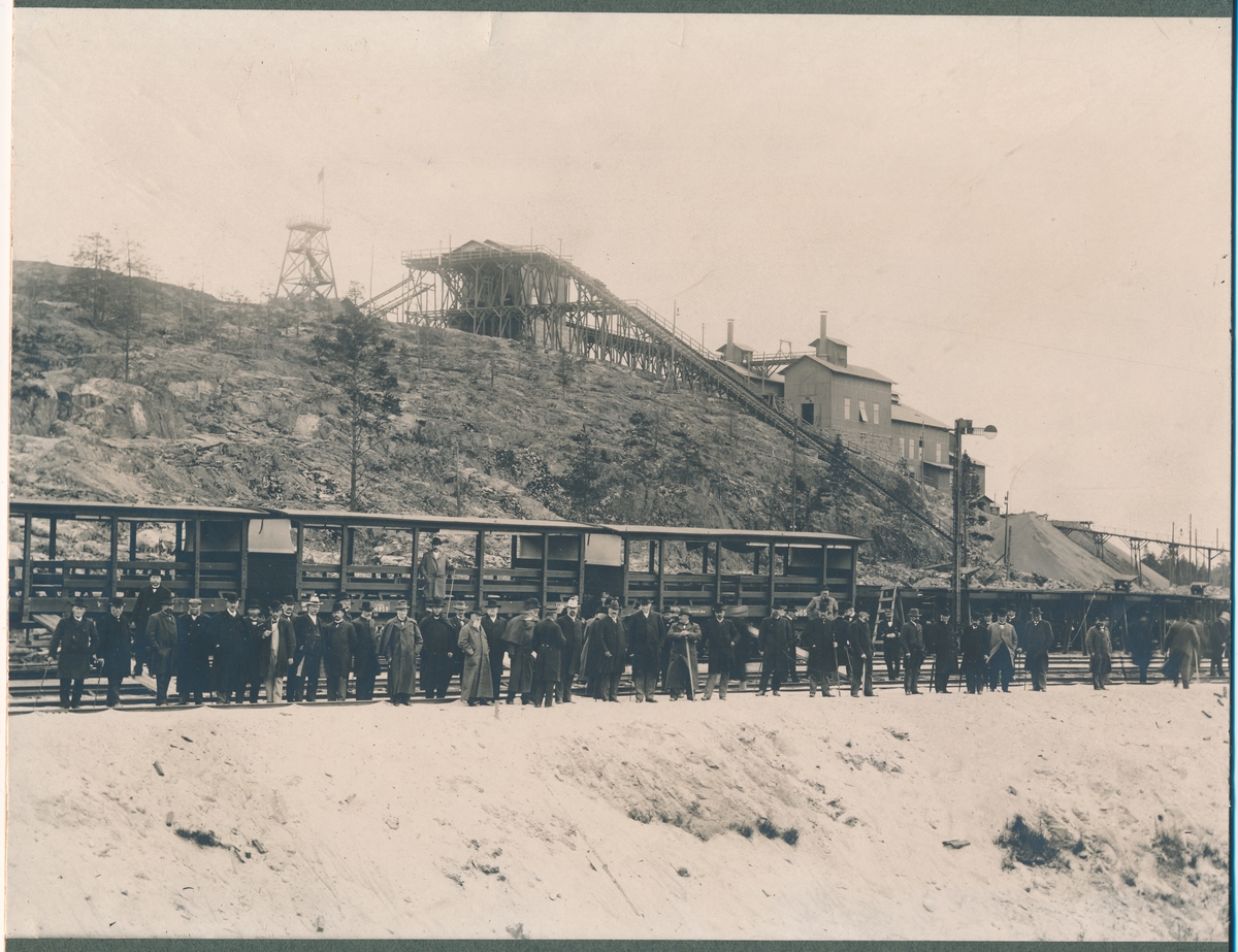 Riksdagsmännens besök på Svartön. Förmodligen vid förhandlingarna om förstärkning av bana och broar för att öka kapaciteten av exploateringen i malmgruvorna.