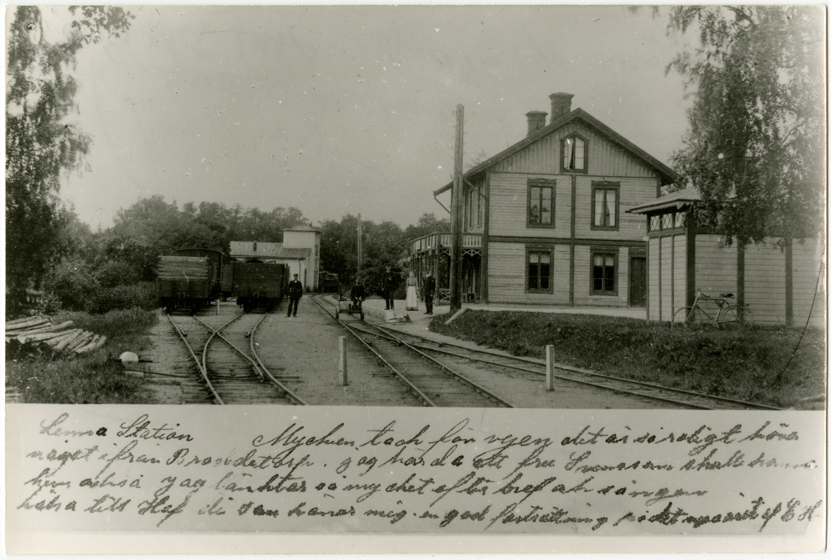 Stationen anlagd samtidigt med banan. 1938 moderniserades stationshuset, två våningar i trä .