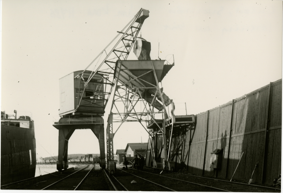 Malmutlastningen i Luleå. Lastplats i hamnen, lossning av båt.