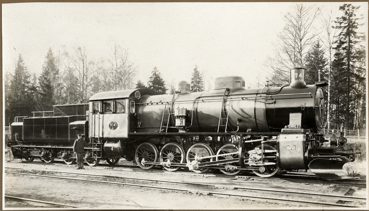 Leveransfoto av Statens Järnvägar, SJ R 974, tillverkat av AB Motala verkstad 1908.