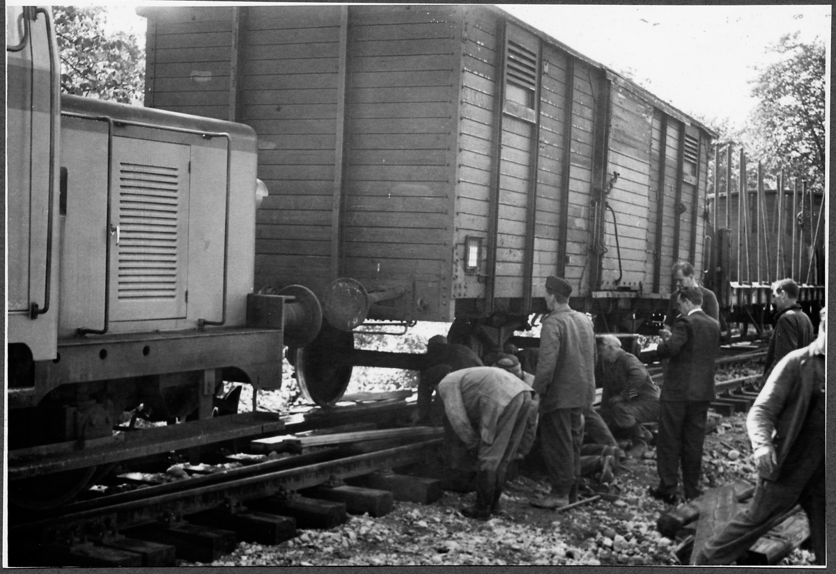 Urspårning av G vagn i kurvan på spår till Överums bruk. Det var första växling på normalspår.