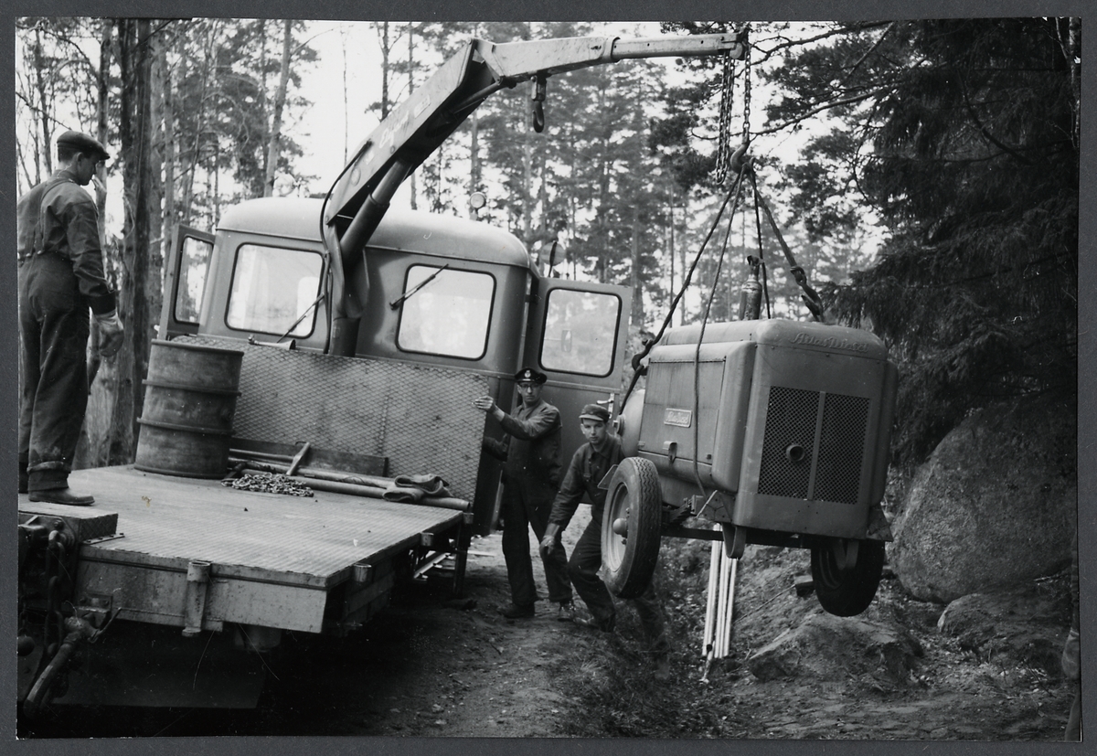 Banarbete vid linjen mellan Ankarsrum och Hjorted. Motortrallan är ombyggd före detta Yp tvåaxlig rälsbuss.