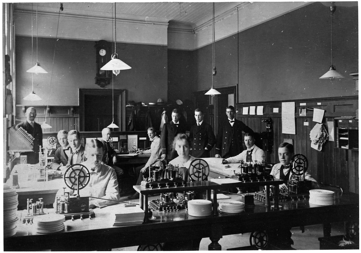 Telegrafister vid järnvägstelegrafen i Hallsberg.