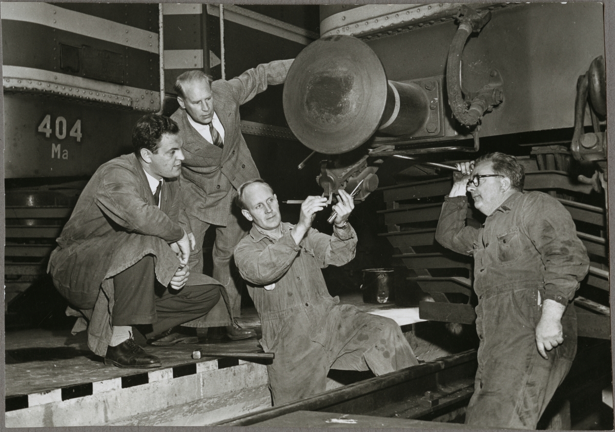 Loverkstaden i Eskilstuna, Trafikaktiebolaget Grängesberg - Oxelösunds Järnvägar, TGOJ Ma 404 i bakgrunden.