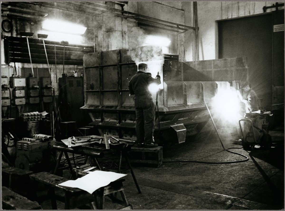 Titel: En malmbehållare arbetas på i Trafikaktiebolaget Grängesberg - Oxelösunds Järnvägar, TGOJ verkstad, Eskilstuna.