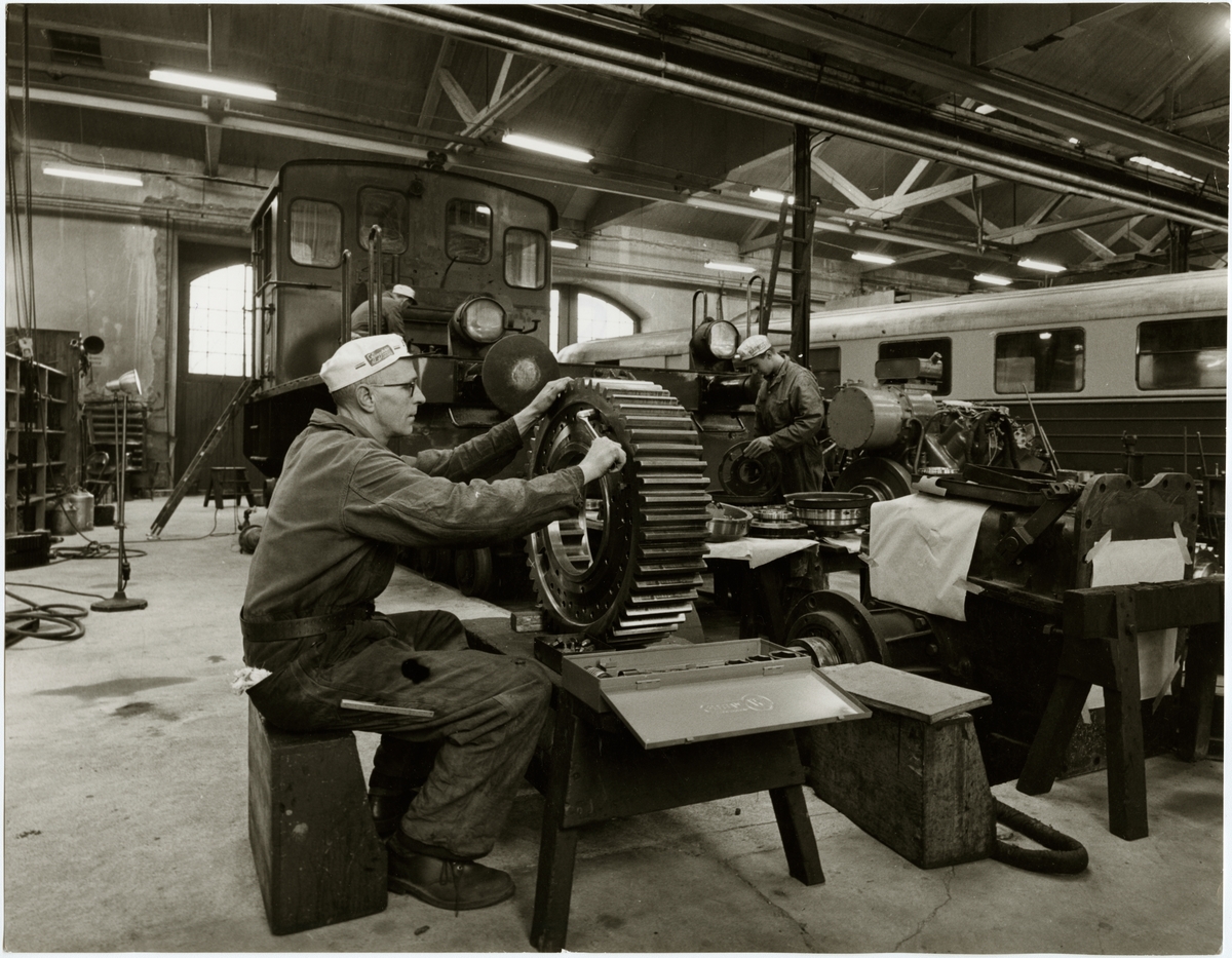 Underhåll av fordon i Trafikaktiebolaget Grängesberg - Oxelösunds Järnvägar, TGOJ verkstad, Eskilstuna.