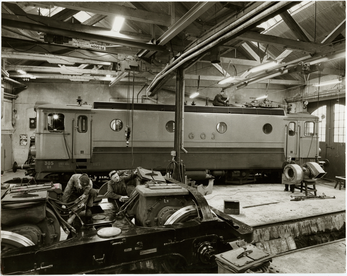 Trafikaktiebolaget Grängesberg - Oxelösunds Järnvägar, TGOJ Bt 305 vid underhåll på verkstaden i Eskilstuna.