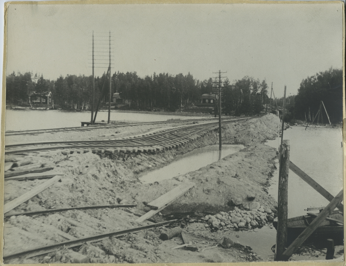 Järnvägsbanken och spåret har rasat på grund av underminering av vatten.