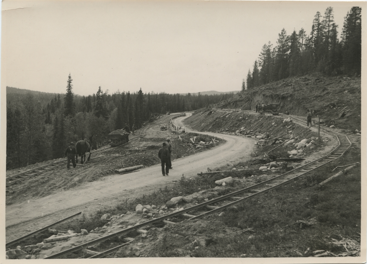Vägarbete/ombyggnation, vid bygget av Inlandsbanans sträckning Kåbdalis-Kitajaur-(Jokkmokk).