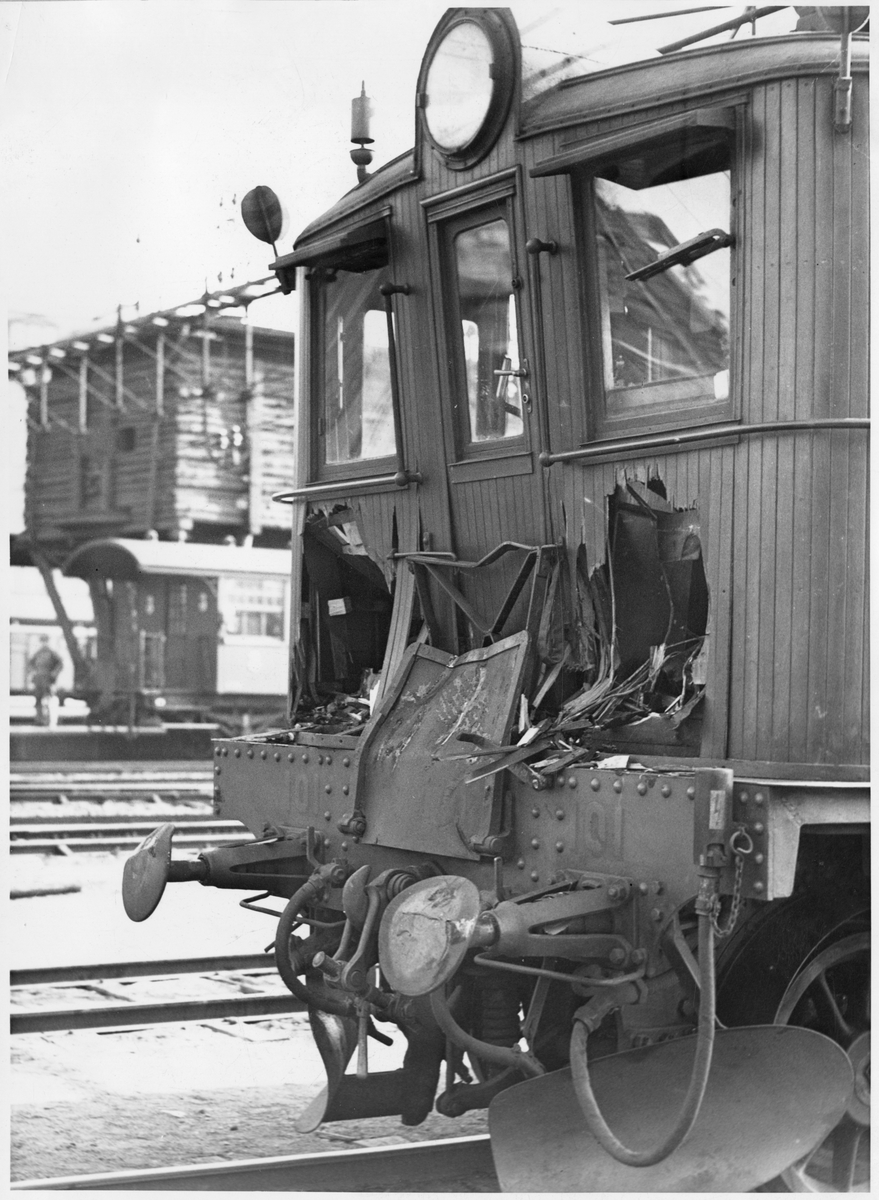 Ellok Statens Järnvägar, SJ Dg 101 efter sammanstötning med godsfinka på Stockholm Centralstation.