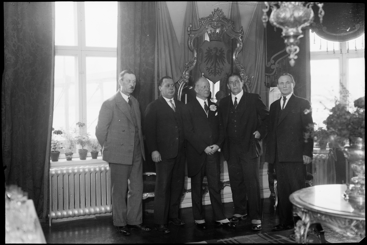 Museipersonalen fotograferad i honnörsrummet. Oscar Werner i mitten fyller 60 år.