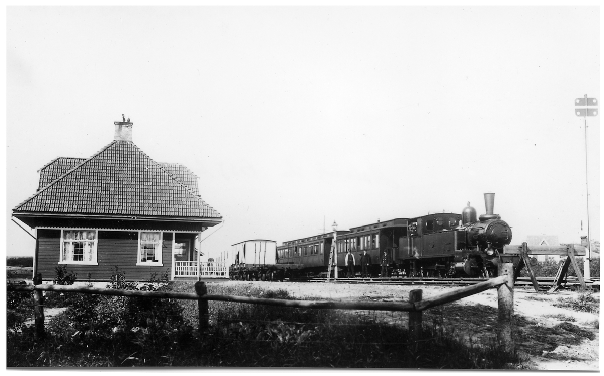 Göteborg-Särö Järnväg, GSJ lok 1 med persontåg samt sommarvagn NN3 vid Malevik station.