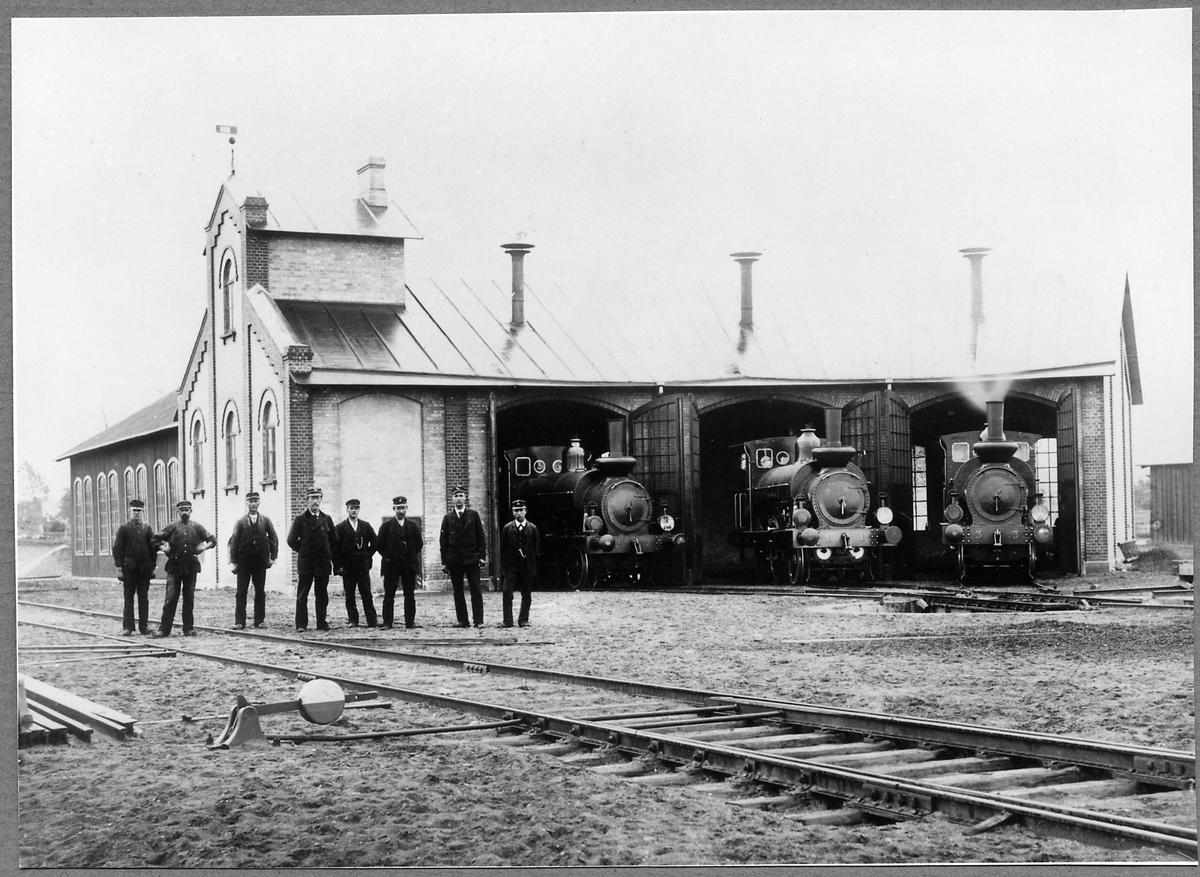 Malmö - Genarps järnväg, MGJ lok 1 "A. F. Hörstedt", MGJ lok 2 "Genarp" och MGJ lok 3 "Qvarnby" vid lokstallet i Genarp.