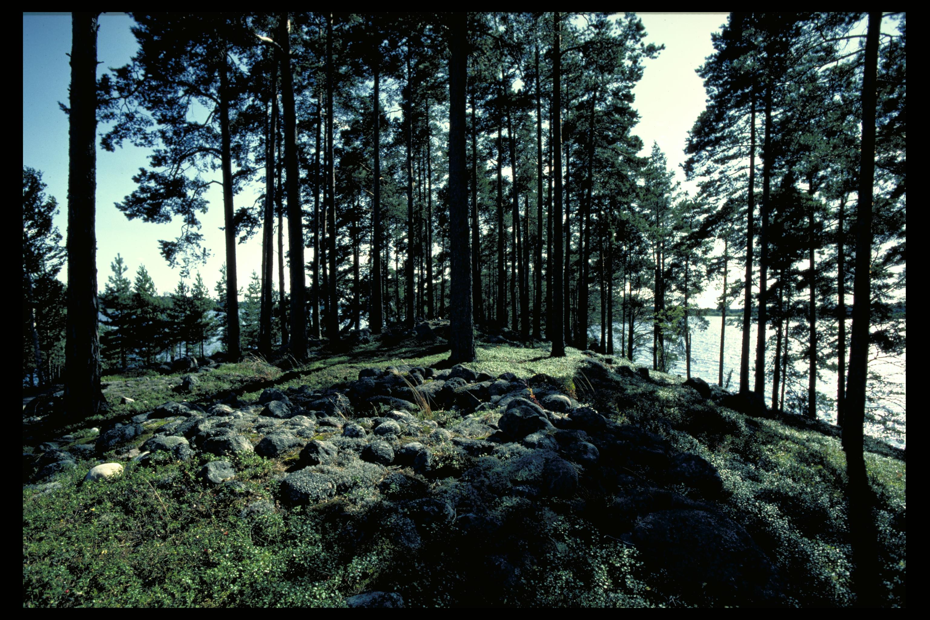 Gravfält med bland annat stensättningar. Bilden troligen från början av 1980-talet.