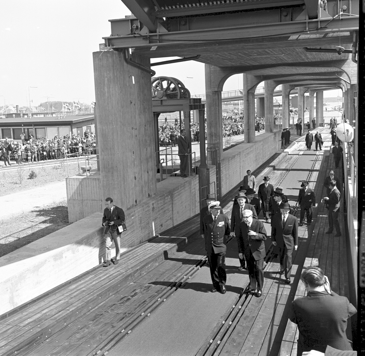 Invigning av "Fågelvägslinjen" mellan Rodbyhavn, Lolland, Danmark och Puttgarden, Fehmarn, Tyskland. Den nya färjelinjen kallas "Fågelvägslinjen", på danska Fugleflugtslinien och på tyska Vogelflugslinie, eftersom linjen följer flyttfåglarnas flygrutt. Danmarks kung Frederik IX, till vänster