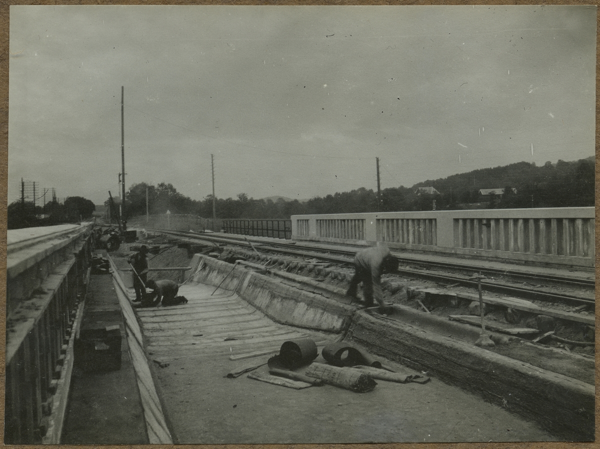 Dubbelspårsbyggnaden mellan Alingsås - Olskroken. Bron över Säveån. isolering.