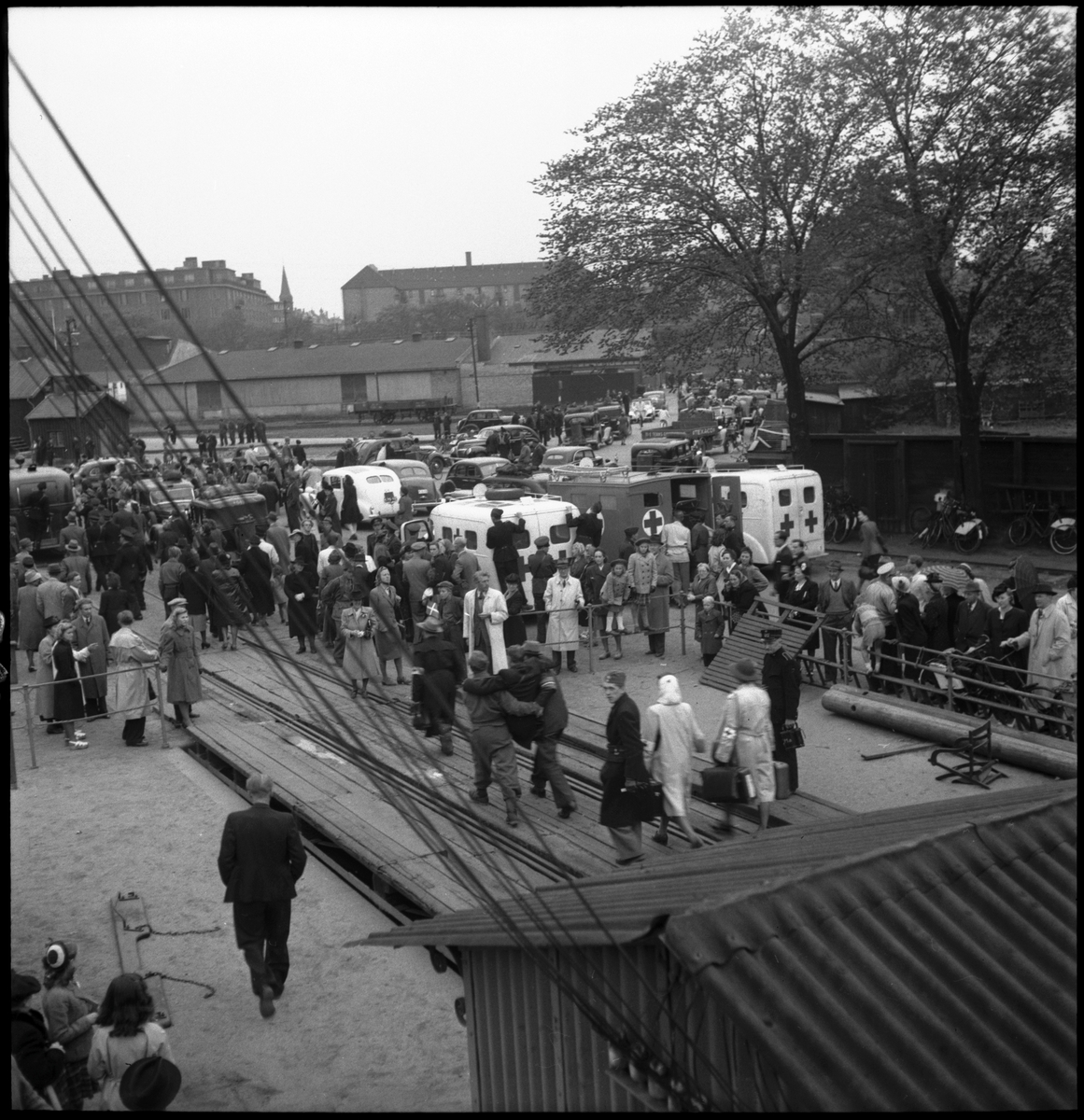 Hemtransport av danska flyktingar, ankomst till Köpenhamns frihamn.