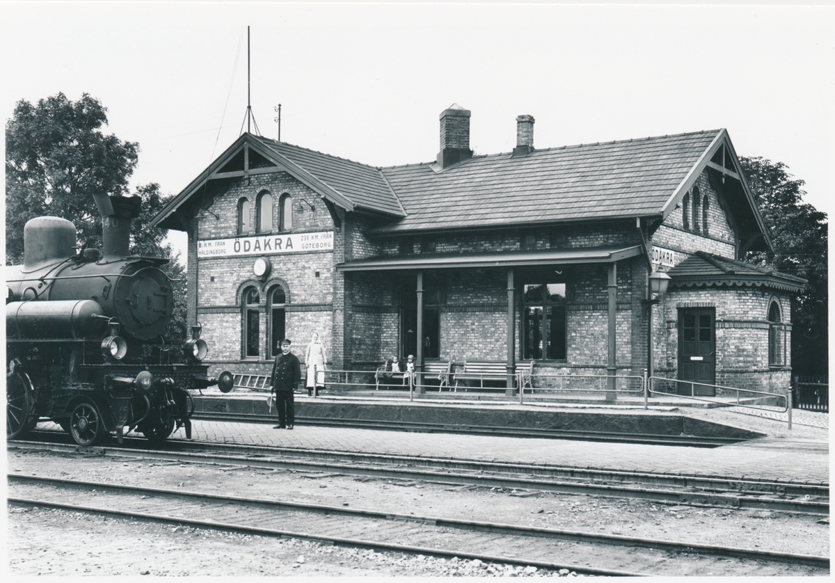 Ödåkra station. Skåne-Hallands Järnväg, SHJ. Banan öppnades 1885. Övertogs av Statens Järnvägar, SJ 1896. Eldrift 1937. SJ J 1340.