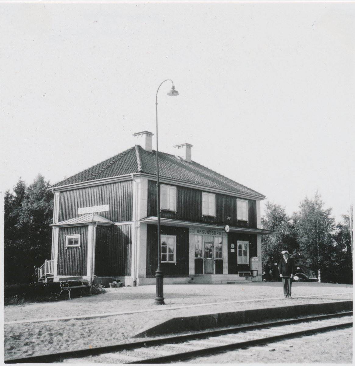 Örsundsbros station. Uppsala-Enköping Järnväg, UEJ. Nybyggt 1925 efter att det gamla hade brunnit ner 1924. Övergick till Statens Järnvägar, SJ 1937.