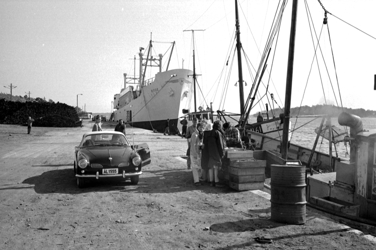 Ålandsresa. Fiskförsäljning i hamnen. M/S Boge. Fiskebåt, Suomi 61