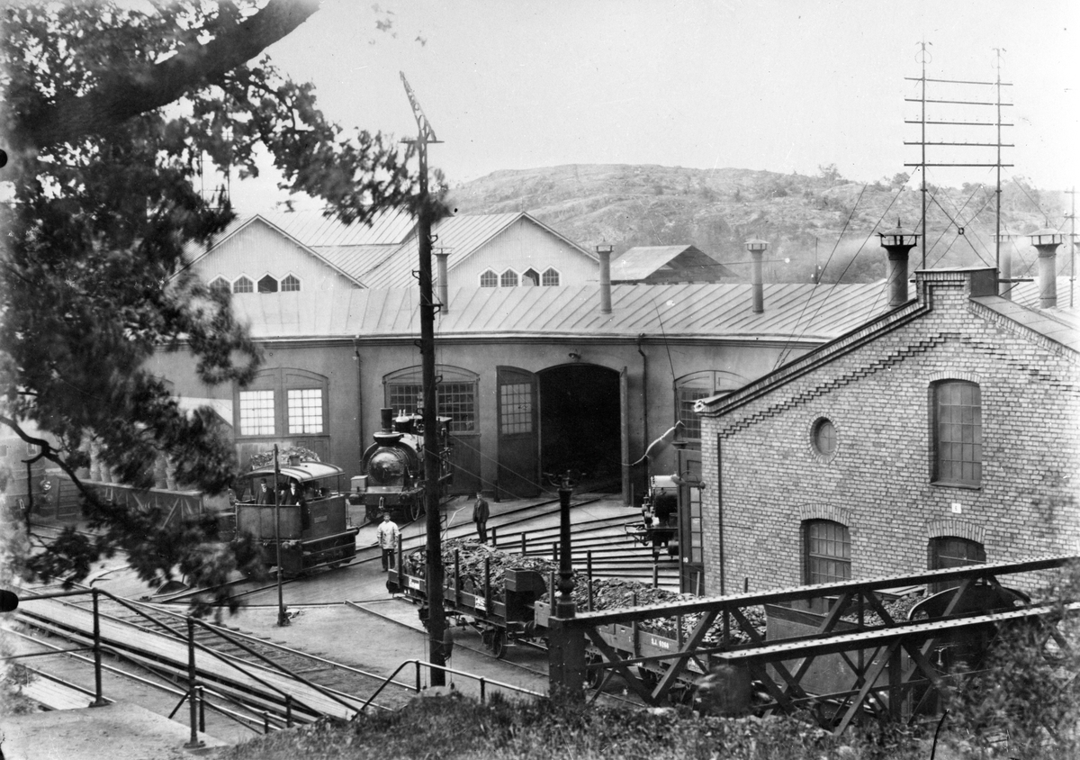 Lokstall. Från vänster, SJ Qn 174, SJ Pb 375