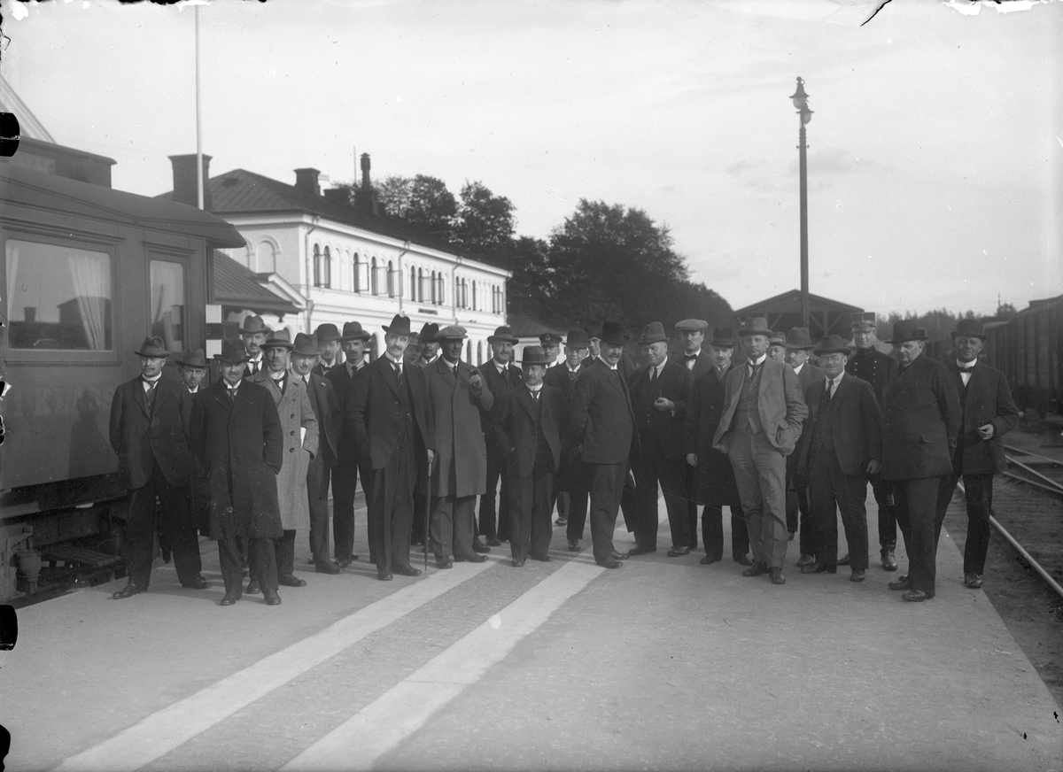 Titel: Deltagare vid besiktning av elektrifieringen av banan Stockholm - Göteborg