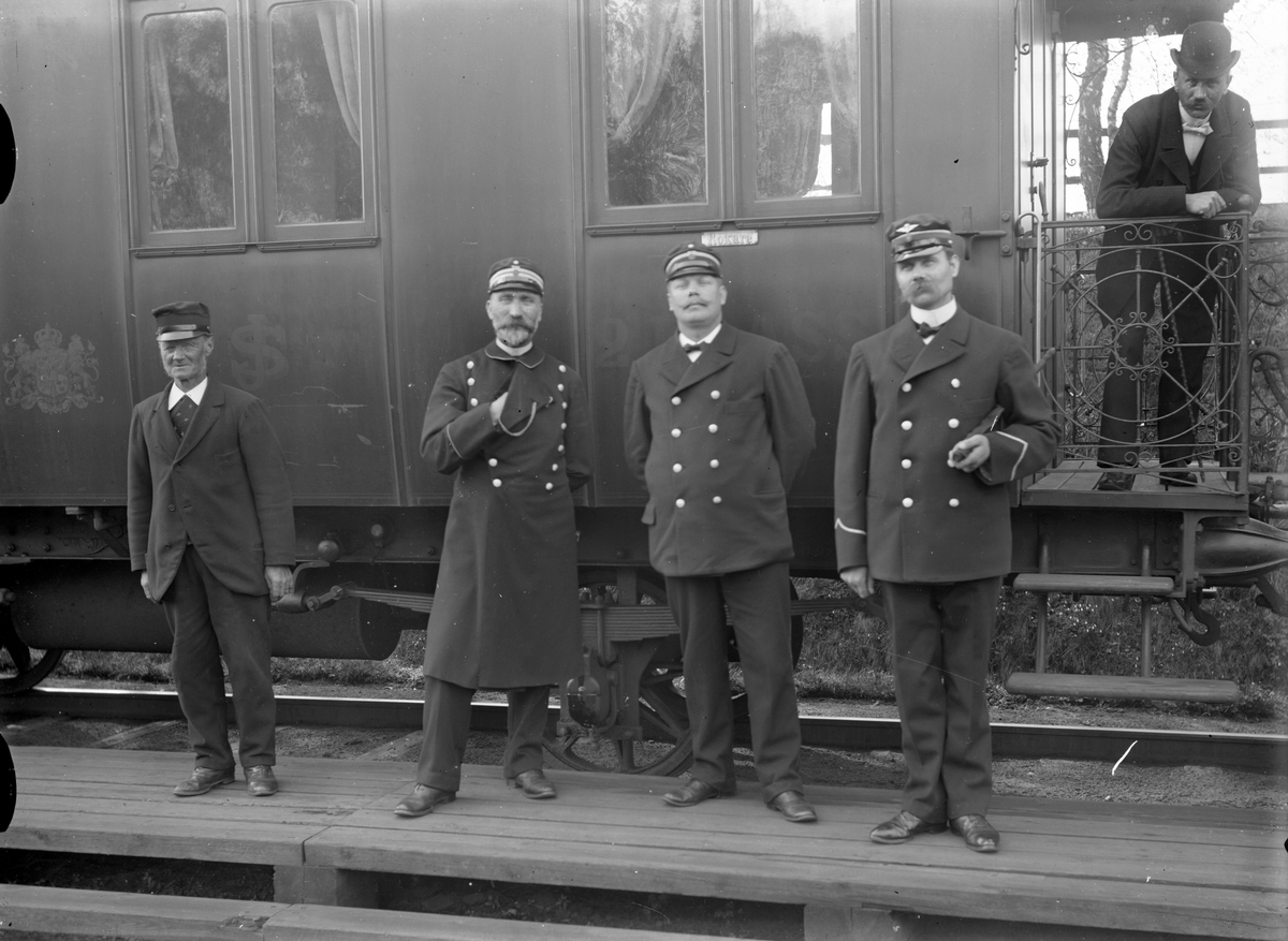 Tåg och stationspersonal i Lagmansholm., (SJ).